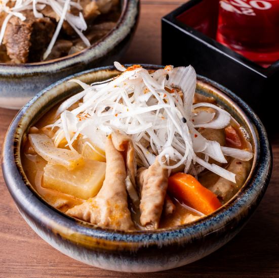 不仅仅是生鱼片和烤串!我们还提供各种适合下酒的下酒菜。其中,慢火炖煮的“内脏汤”味道鲜美,鲜嫩的内脏和大块的豆腐中慢慢渗入了汤汁,让人忍不住想再喝一杯。除上述之外,还有从经典小吃到沙拉和油炸食品等一系列适合下酒的菜肴!